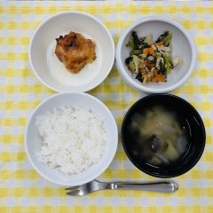 ごはん・豆腐の野菜そぼろ煮・ベイクドじゃが・わかめスープ