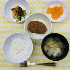 ごはん・鮭の塩焼き・ほうれん草の塩ごま和え・焼きかぼちゃ・けんちん汁