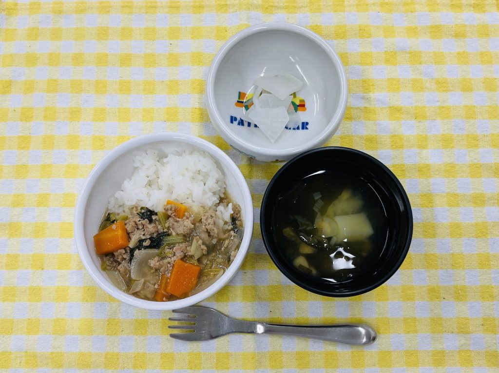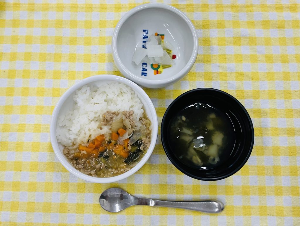 豚丼・大根の甘酢漬け・わかめスープ