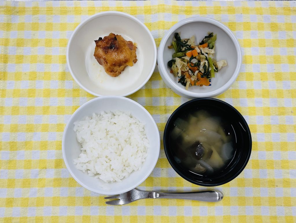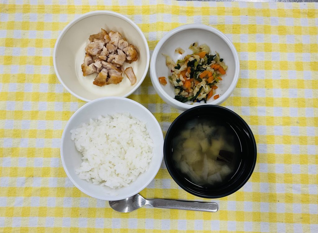 御飯・タンドリーチキン・小松菜のおかか和え・みそ汁(なす・玉ねぎ)