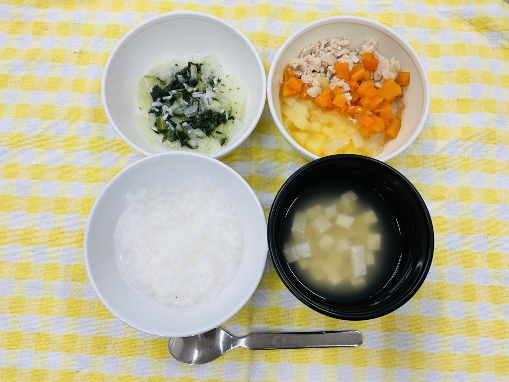 全粥・肉じゃが・小松菜のしらす和え・豆腐すまし汁