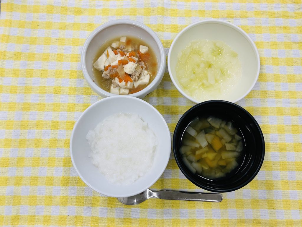 全粥・豆腐の味噌煮・キャベツのだし煮・すまし汁