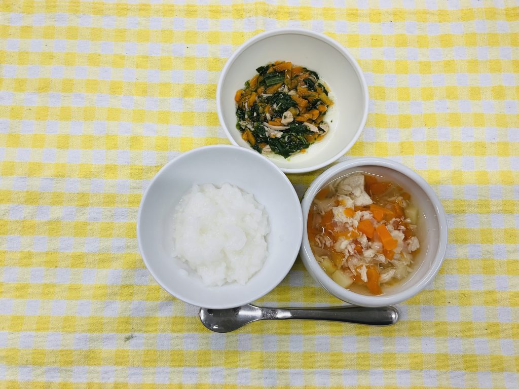 全粥・野菜の煮物・ほうれん草のツナ和え