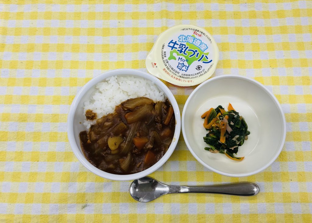 ハヤシライス(牛肉)・ほうれん草のツナ和え・牛乳プリン