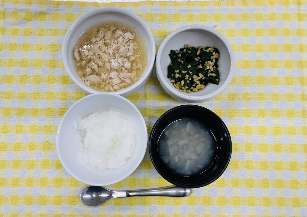全粥・ささみのとろみ煮・納豆和え・みそ汁