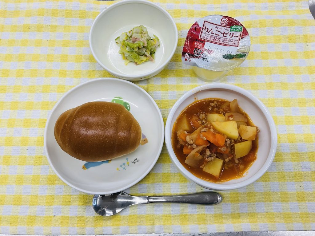 ロールパン・野菜のトマト煮・白菜のサラダ(ツナ・ごま)・フルーツゼリー
