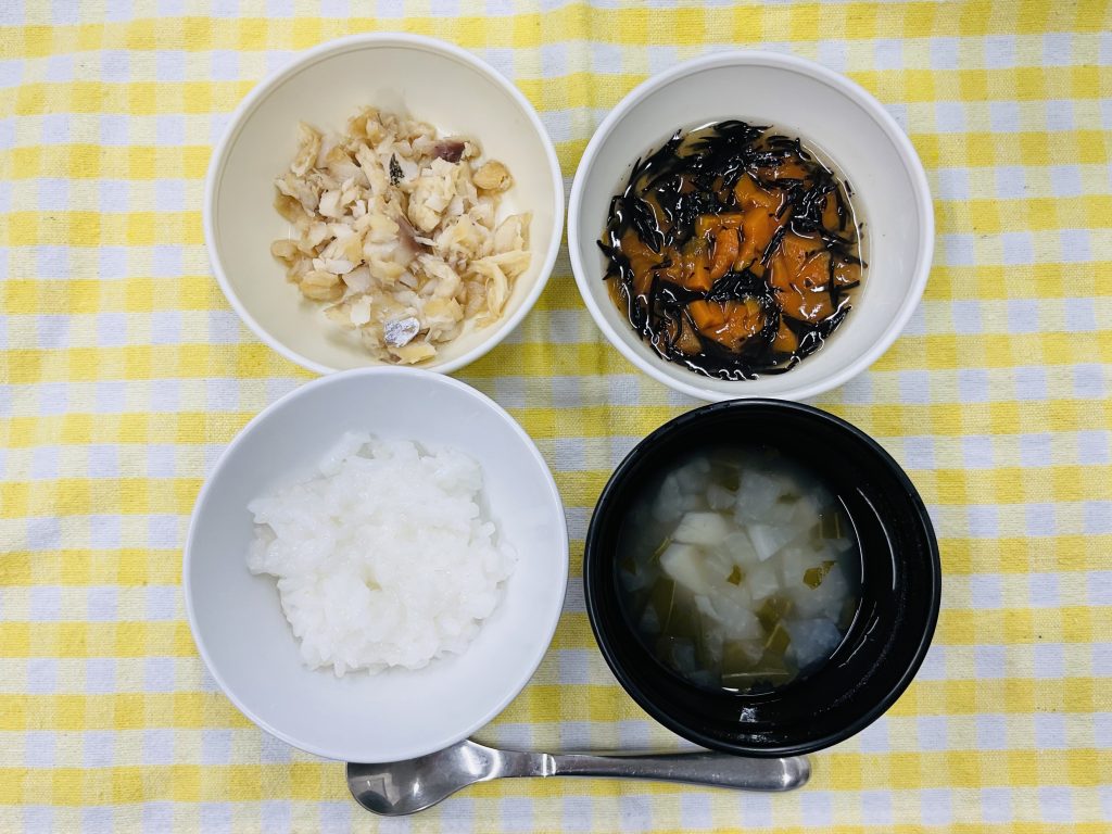 全粥・白身魚のほぐし・ひじきのとろみ煮・すまし汁