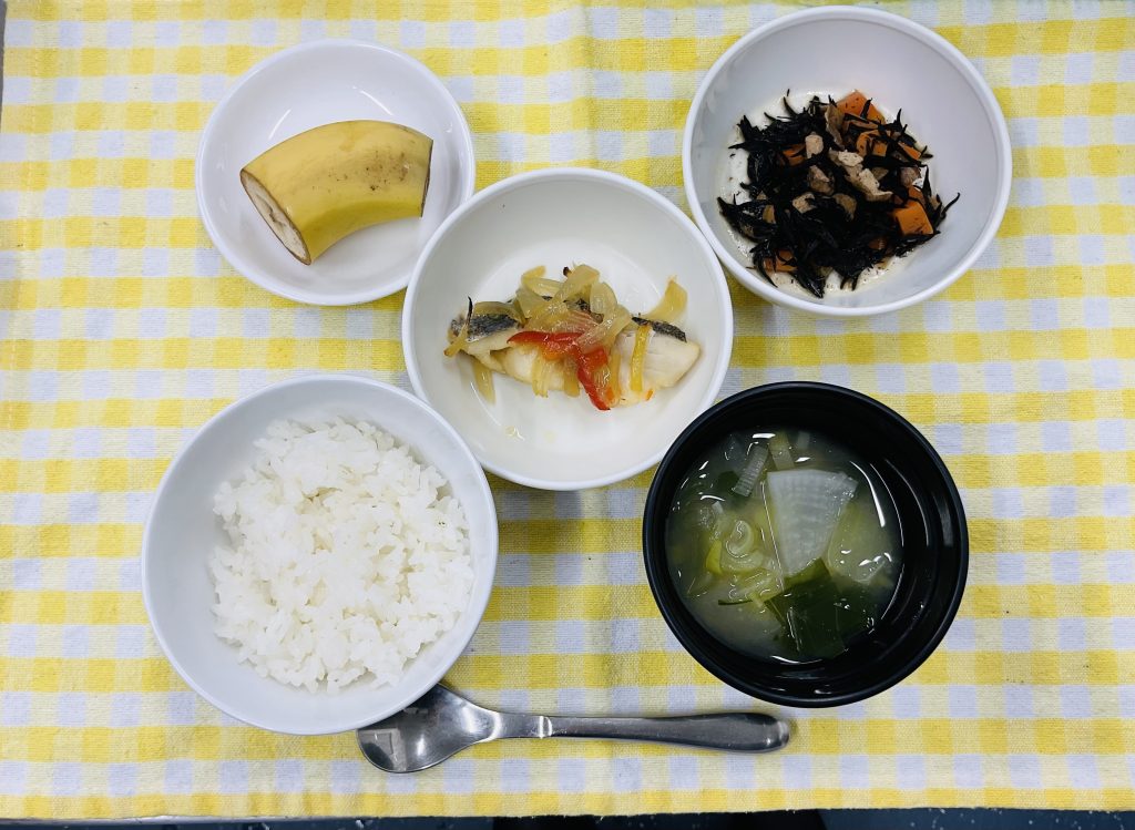 御飯・白身魚の包み焼き・ひじきの煮物・みそ汁・バナナ