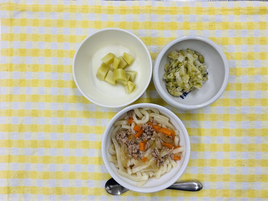 あんかけうどん・さつま芋の甘煮・キャベツのツナ煮