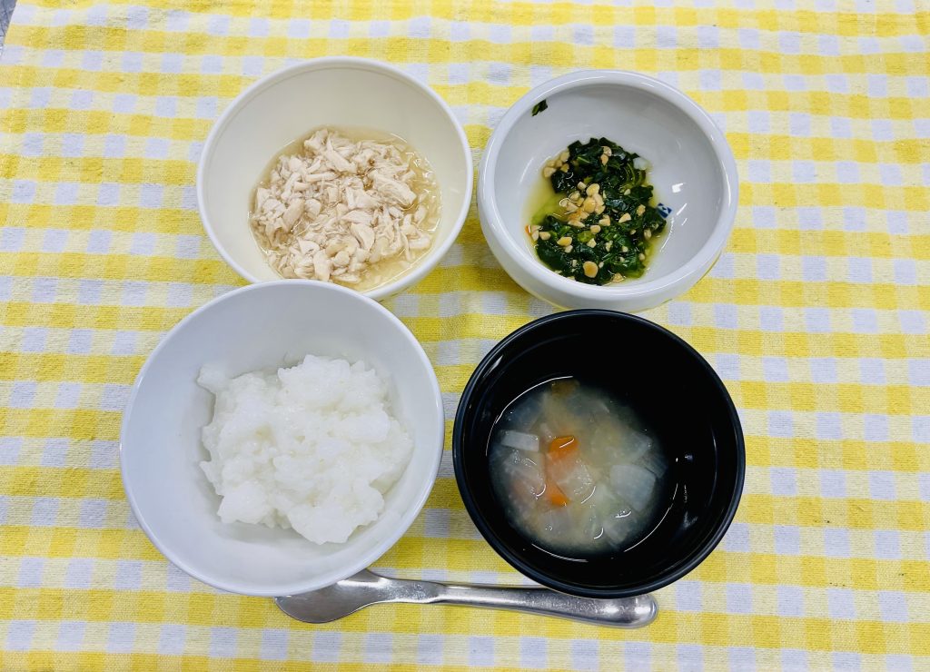全粥・ささみのとろみ煮・納豆和え・みそ汁
