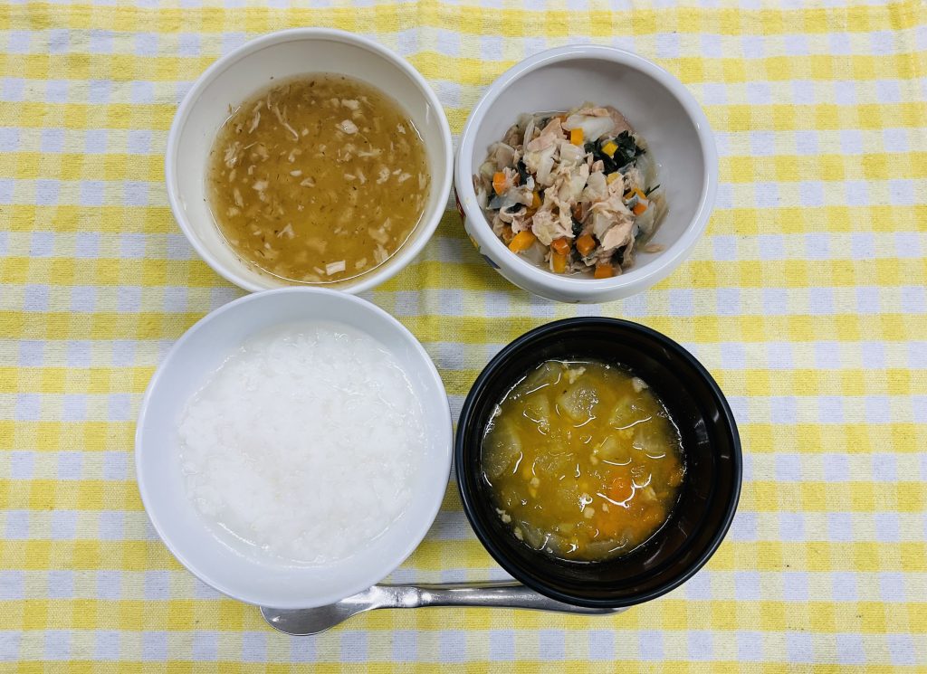 全粥・ささみのとろみ煮・小松菜のツナ煮・かぼちゃ汁