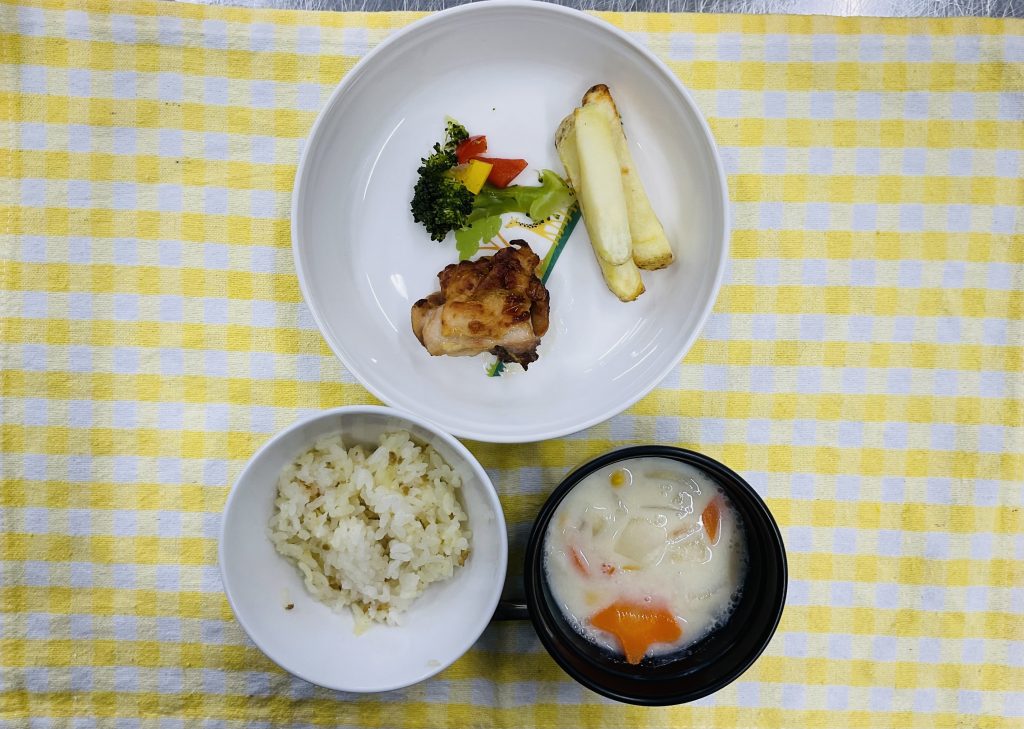 野菜粥・鶏ももとろみ煮・マッシュポテト・野菜スープ