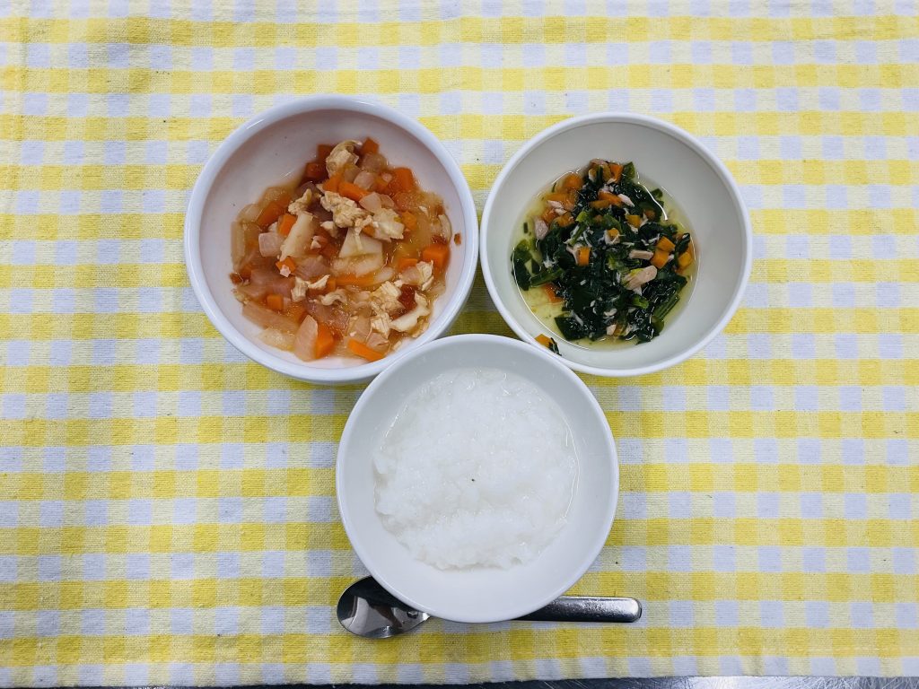 全粥・野菜のトマト煮・ほうれん草のツナ和え煮