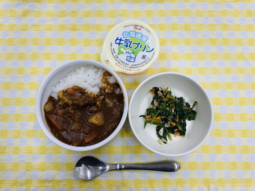 ハヤシライス・ほうれん草のツナ和え・牛乳プリン