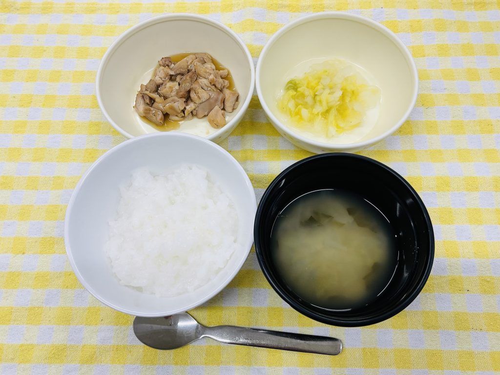 全粥・鶏のとろみ煮・茹で白菜・味噌汁