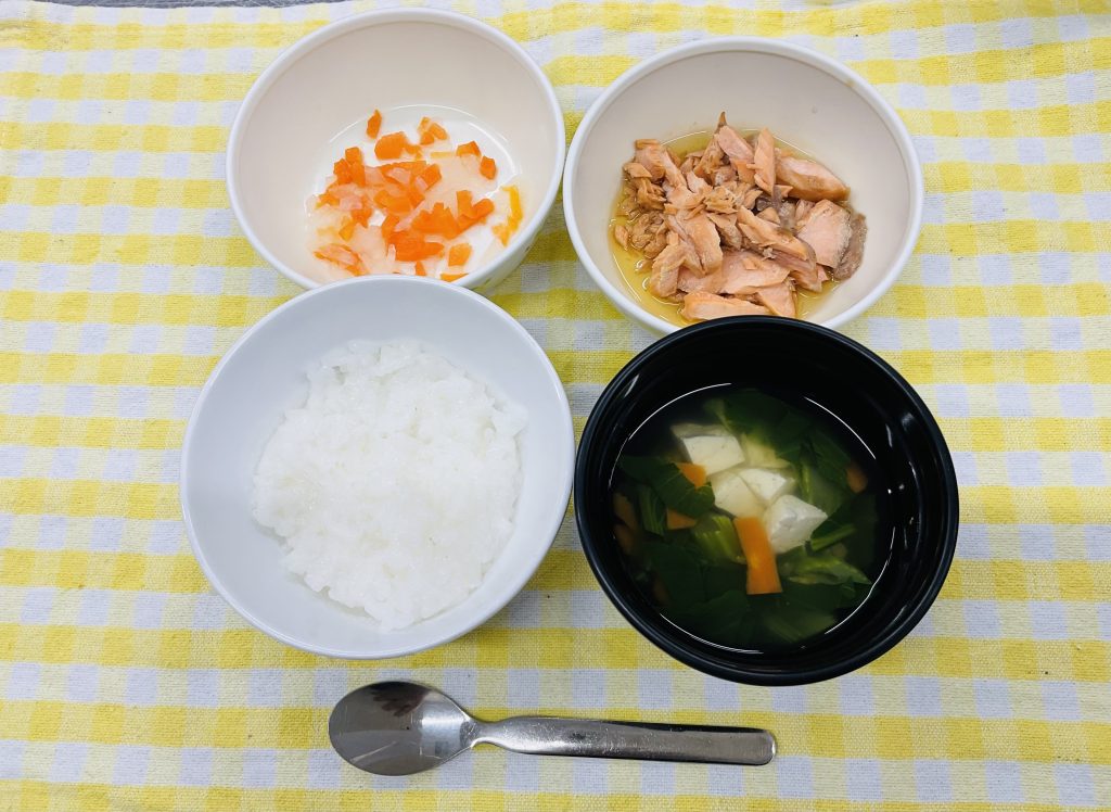 全粥・鮭のほぐし・なます・豆腐すまし汁