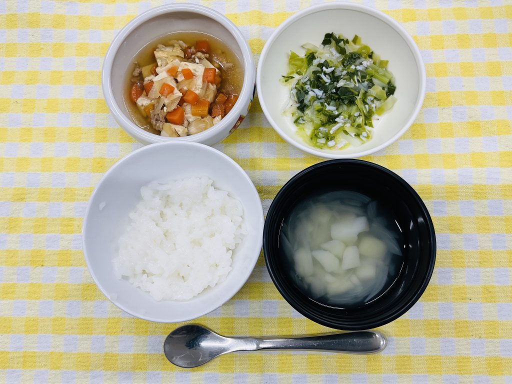全粥・豆腐のあんかけ・小松菜のサラダ・じゃがいものスープ煮