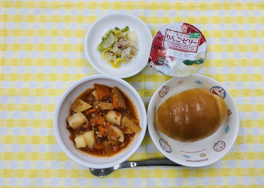 ロールパン・野菜のトマト煮・白菜のサラダ・フルーツゼリー