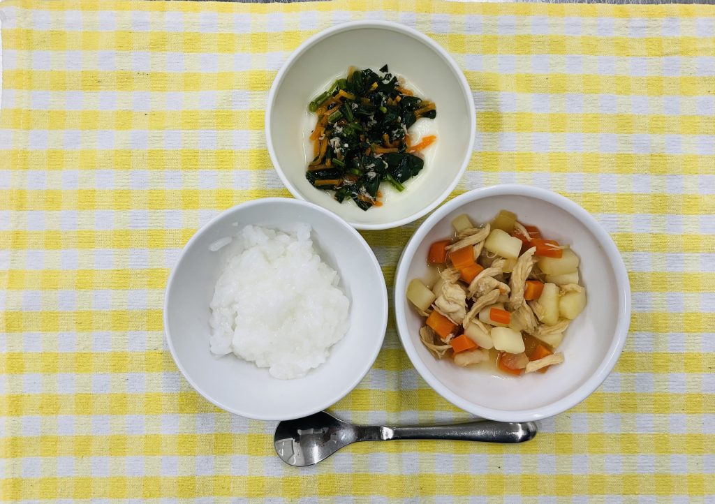 全粥・肉じゃが・ほうれん草のツナ和え