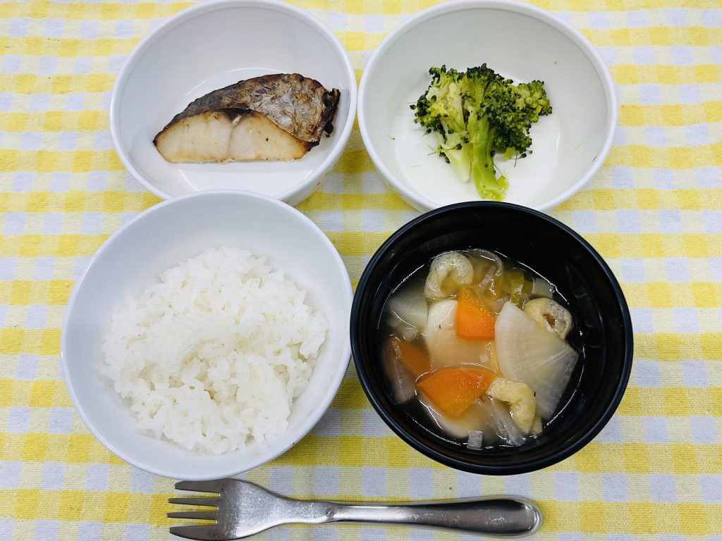 御飯・さわらのしょうゆ焼き・ゆでブロッコリー・五目汁