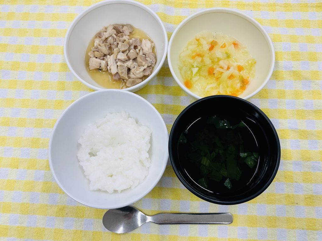 全粥・鶏肉のだし煮・キャベツの柔らか煮・すまし汁