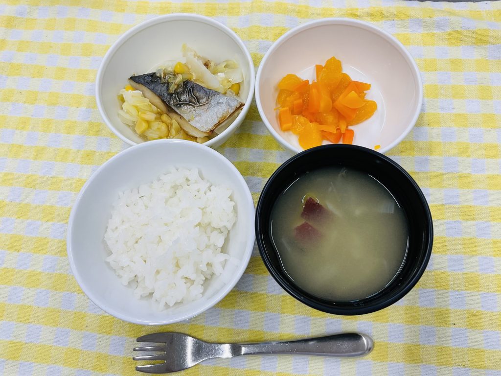 御飯・さわらと白菜の重ね蒸し・にんじんとみかんのサラダ・味噌汁