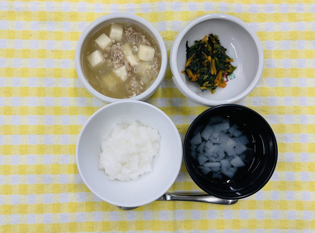 全粥・豆腐のあんかけ・ほうれん草の和えもの・大根のすまし汁