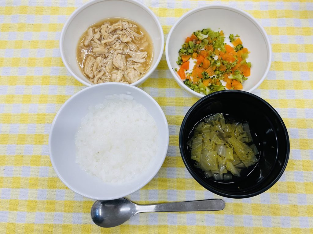 全粥・ささみのとろみ煮・ブロッコリーの和え物・すまし汁