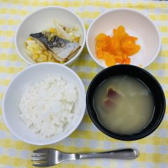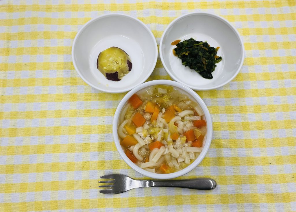 煮込みうどん・さつま芋の甘煮・ほうれん草の和え物