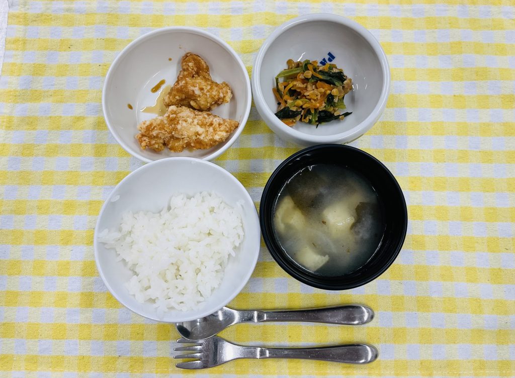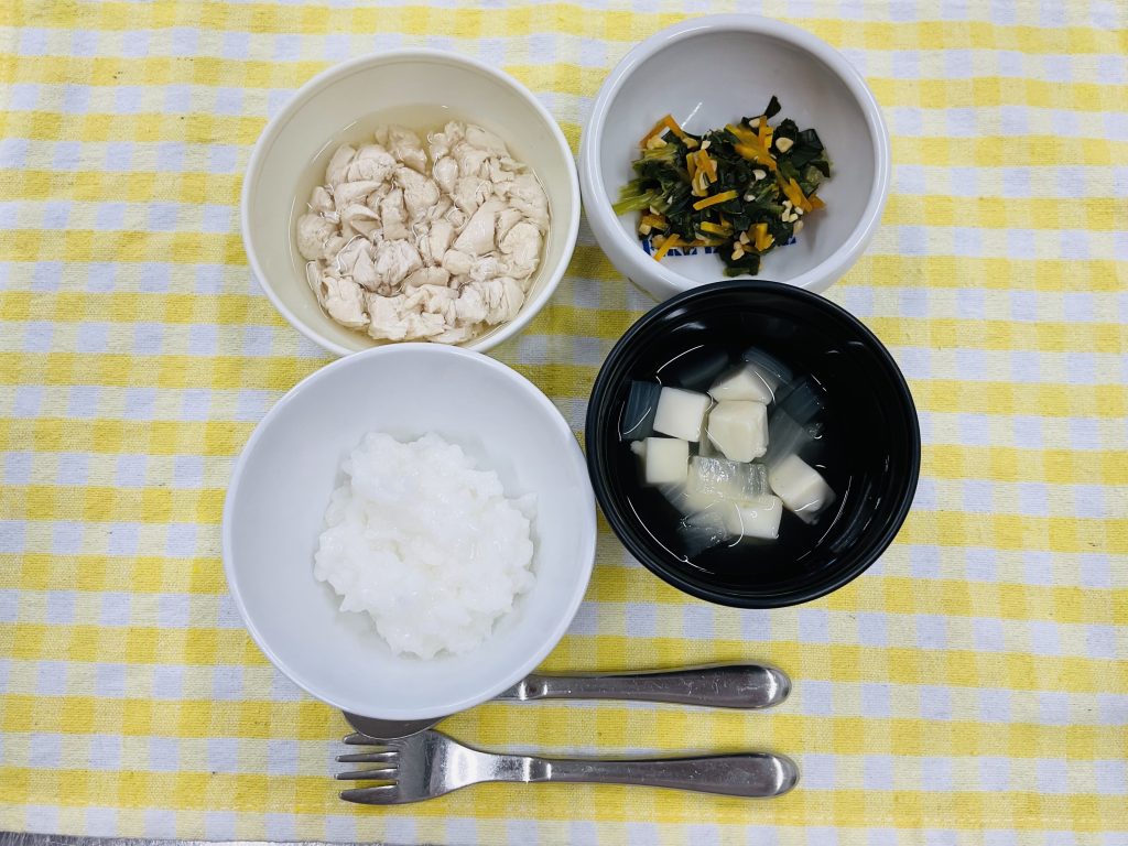 全粥・ささみのとろみ煮・小松菜の納豆和え・すまし汁