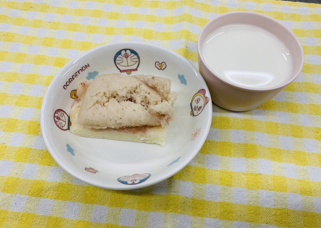 米粉蒸しパン(ももいろ)・牛乳