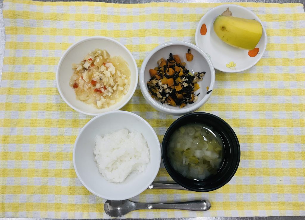 ごはん・白身魚の包み焼き・ひじきの煮物・みそ汁・バナナ
