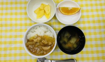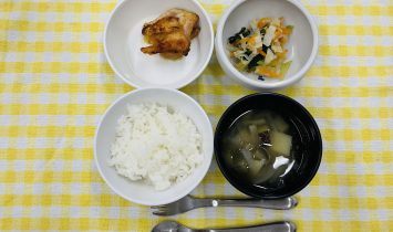 御飯・タンドリーチキン・小松菜のツナ和え・みそ汁(ナス・玉ねぎ)御飯・タンドリーチキン・小松菜のツナ和え・みそ汁(ナス・玉ねぎ)かぼちゃボーロ・牛乳…
