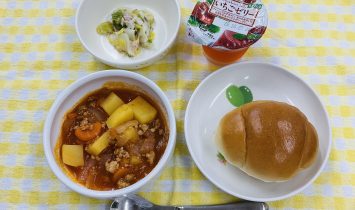 バターロール・ポークビーンズ・白菜のサラダ(ツナ・ごま)・ゼリーバターロール・ポークビーンズ・白菜のサラダ(ツナ・ごま)・ゼリー鮭ご飯・牛乳…