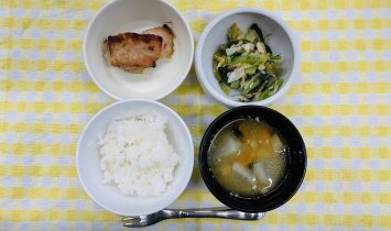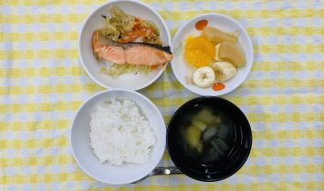 御飯・しゃけのちゃんちゃん焼き・すまし汁(じゃが芋・玉ねぎ)・フルーツカクテル(バナナ・みかん缶)御飯・しゃけのちゃんちゃん焼き・すまし汁(じゃが芋・玉ねぎ)・フルーツカクテル(モモ)牛乳・米粉蒸しパン(りんご)…