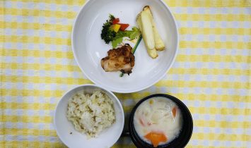 野菜粥・鶏ももとろみ煮・マッシュポテト・野菜スープクリスマス・カレーピラフ・焼き鳥と野菜・フライドポテト・コーンスープ牛乳・ホットケーキ…