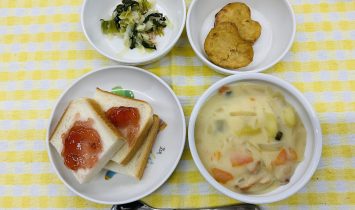パン粥・ポトフ・小松菜のツナ煮食パン・クリームシチュー・チキンナゲット・小松菜のツナ酢和え野菜粥・牛乳…