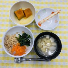秋、お隣の方に頂いた柿で干し柿をつくりました今日のお茶会でお茶菓子として頂きました子どもたちのコメントは…「あま~い」「ぐみみたい」という声も…