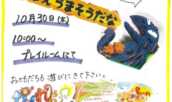 10月30日(木) 10:00~ プレイルームにてみんなで楽しみましょう♪未就園のお友だちも遊びに来てください。観覧希望の方は前日までに、園におしらせくださいね。…