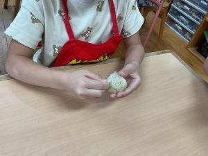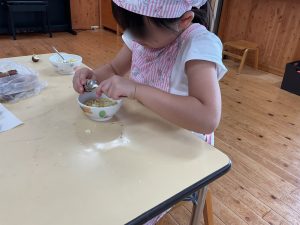 栗の匂いを感じながら、上手に包んで絞り、 自分だけの栗きんとんができました!