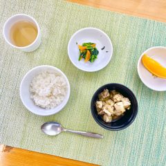 ご飯肉豆腐ほうれんそうのナムルオレンジ…