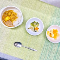 ご飯鶏のから揚げじゃがいもきんぴらみそ汁りんご…