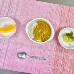 ハヤシライスほうれんそうのツナ和え牛乳プリン…