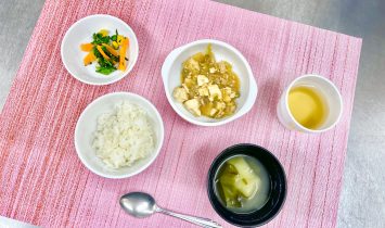 ご飯麻婆豆腐ほうれんそうのナムルじゃがいものスープ…