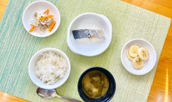 ご飯さわらの塩焼きキャベツのゆかり和えみそ汁バナナ…