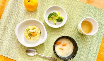ピラフクリームシチューブロッコリーのごま和えみかん…