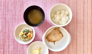 かじきの竜田揚げ卯の花みそしるりんご…