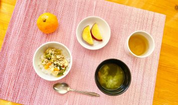 だいこんのそぼろ丼ベイクドじゃが豆腐のすまし汁みかん…