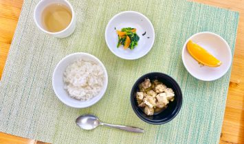 ご飯タンドリーチキン小松菜のごま和えみそ汁…