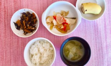 ご飯白身魚の包み焼きひじきの煮物みそ汁バナナ…